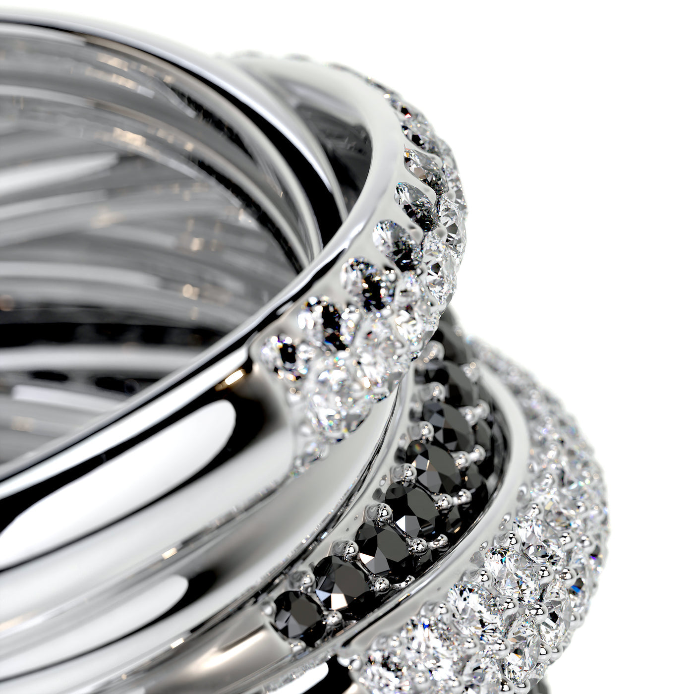 Anillo mil tiras - negro con plateado